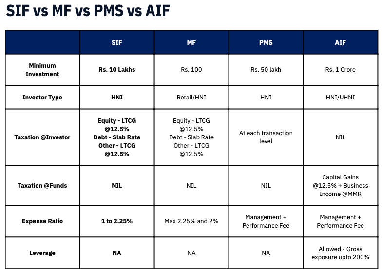 advantage of SIFs is the structure, transparency, and tax efficiency of a Mutual Fund combined with alternative-like flexibility. Always compare the post-tax returns when benchmarking against PMS and AIFs.